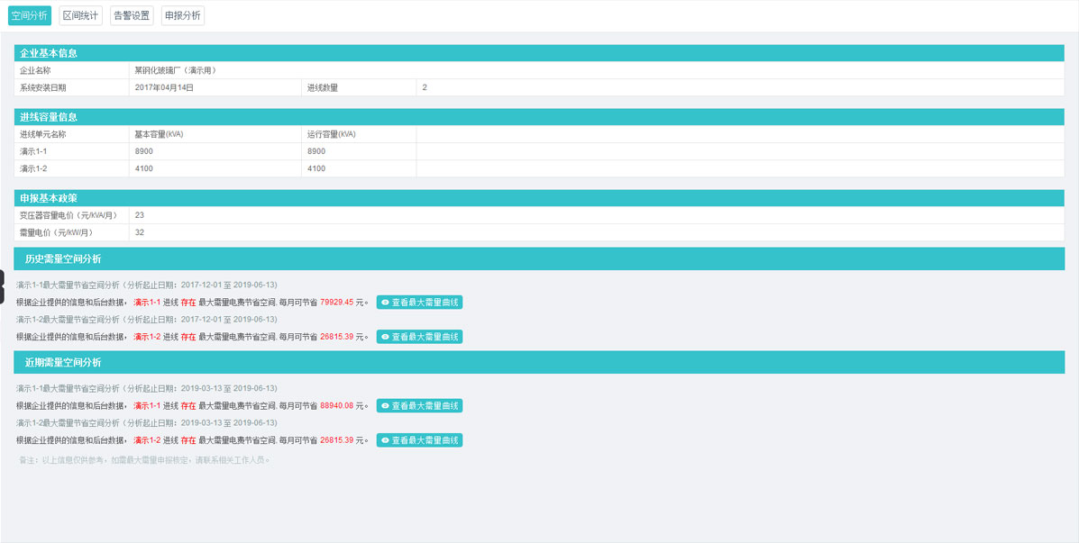 基于精細化歷史用電數(shù)據(jù),分析企業(yè)基本電費優(yōu)化空間,給出企業(yè)基本電費管理最優(yōu)方案,同時提供最大需量預警、告警功能,為企業(yè)提供高效、便捷的容需量管理服務(wù)。